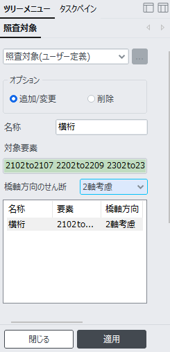 - 個別(例:横桁)にグループ化し、曲げとせん断の照査だけを行う際に使用します。
